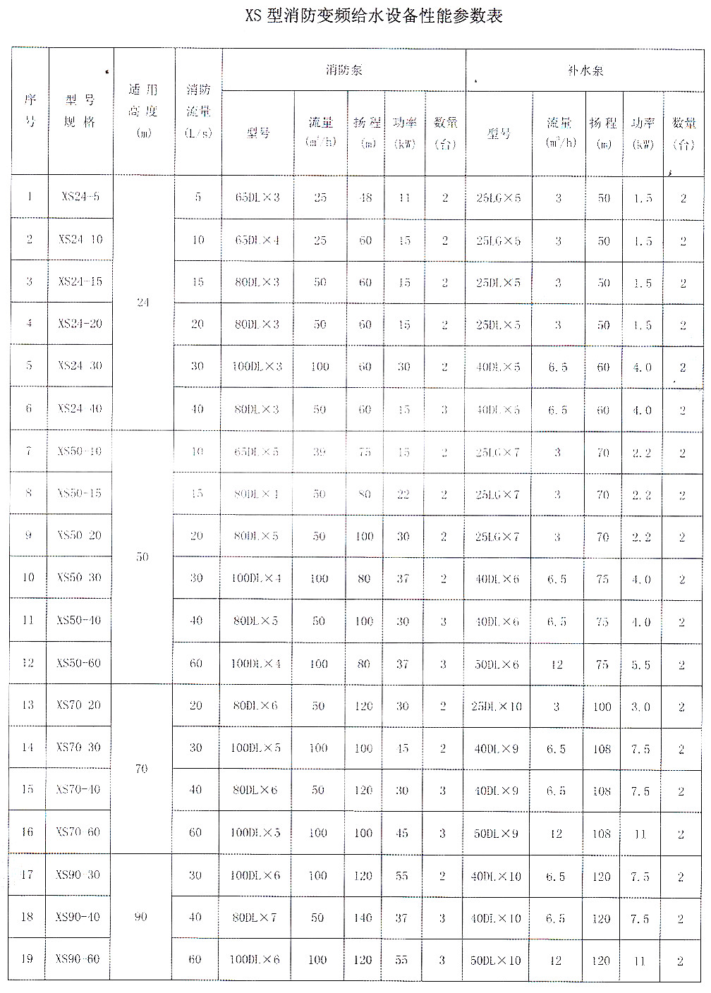 XS型消防變頻給水設備是把微機技術、變頻技術與電機泵組控制相結合的新形機電一體化供水裝置。適用于城市高層建筑、生活小區、工礦企業的消防用水或生活用水。