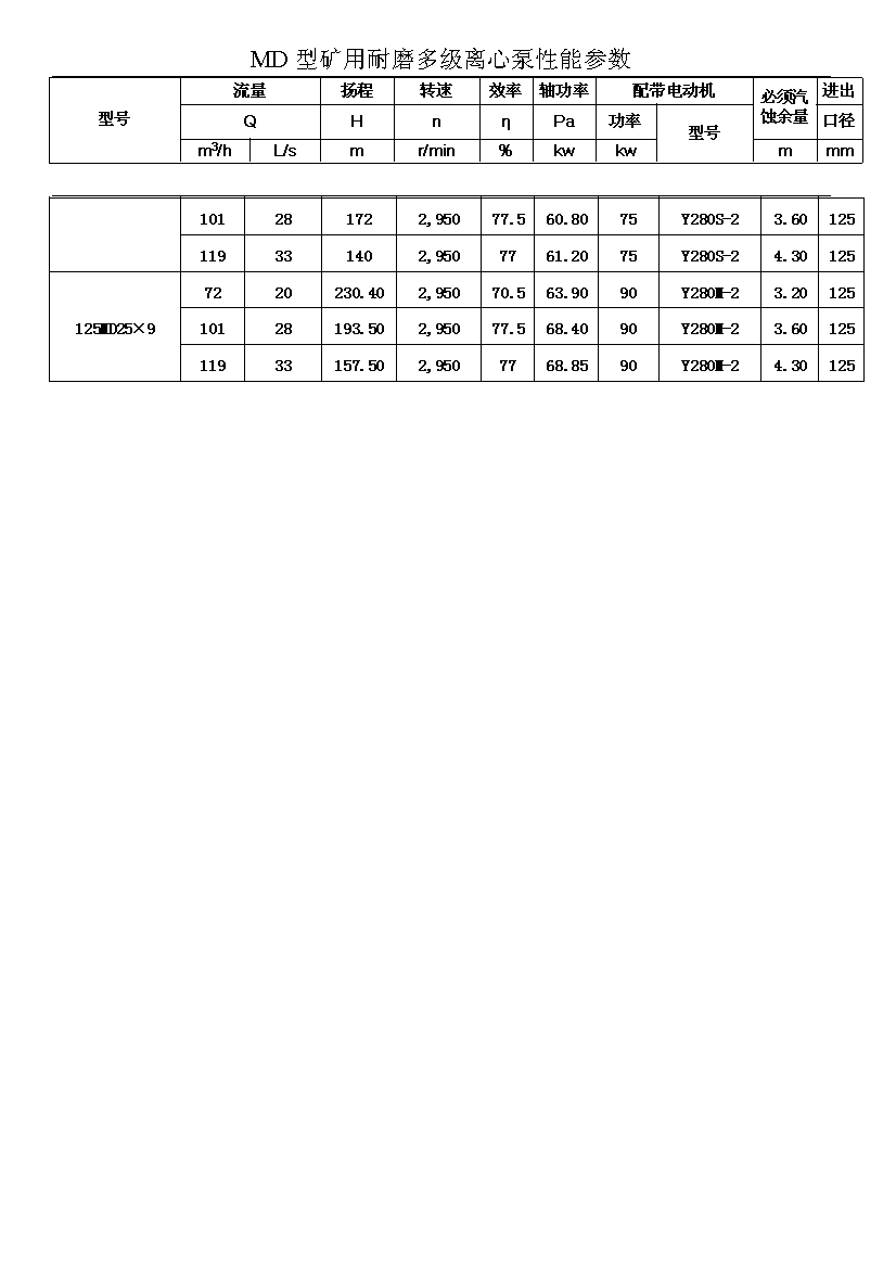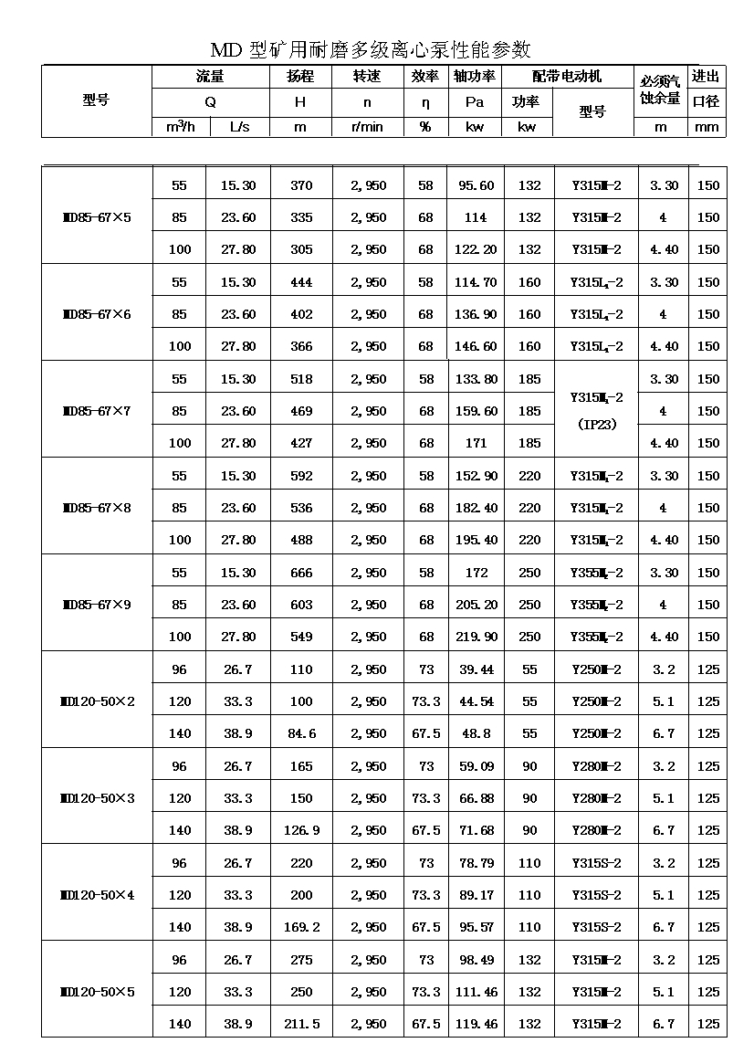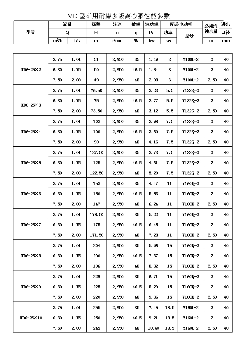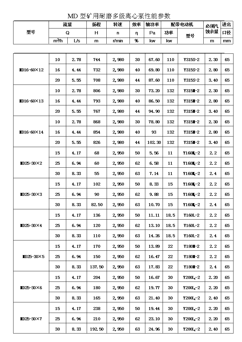 MD型耐磨多級離心泵,是我公司在D型單吸多級清水離心泵的基礎上,改造設計的一種耐磨多級離心泵。MD型耐磨多級離心泵,高效節(jié)能,耐磨可靠,壽命長, 特別適用于礦山排水,抽送固體顆粒含量不大于1.5%(顆粒直徑小于0.5毫米)的礦井水及其他類似液體,液體溫度不高于80度。