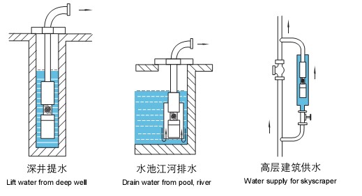 1、電機、水泵一體,潛入水中運行,安全可靠。