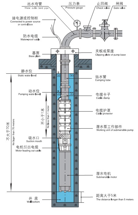 2、對井管、揚水管無特殊要求(即:鋼管井、灰管井、土井等均可使用;在壓力許可下、鋼管、膠管、塑料管等均可作揚水管使用)。