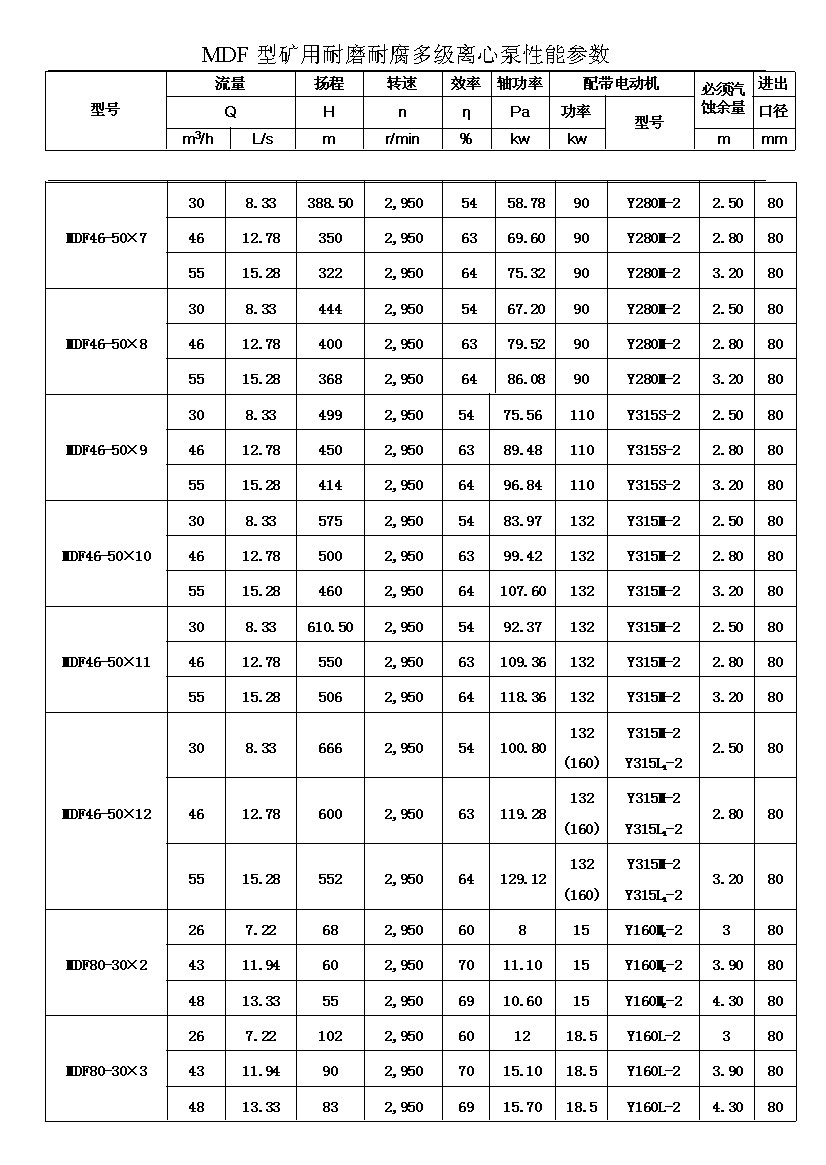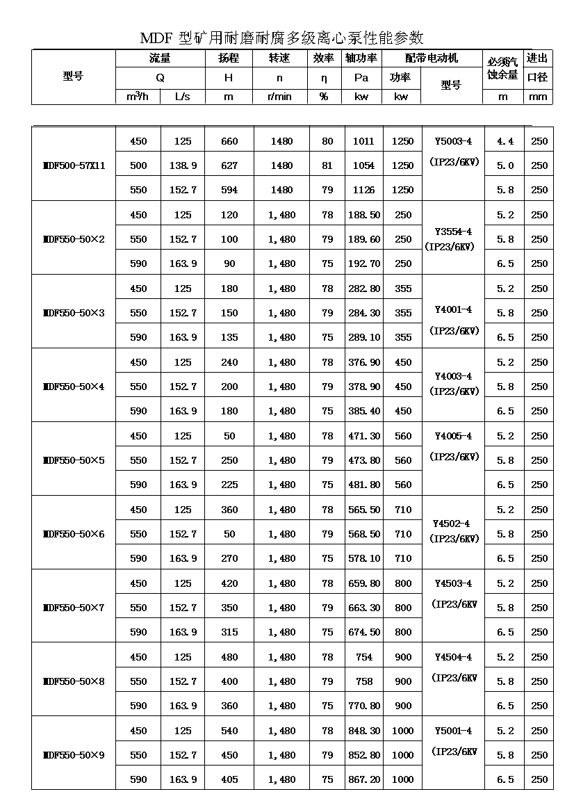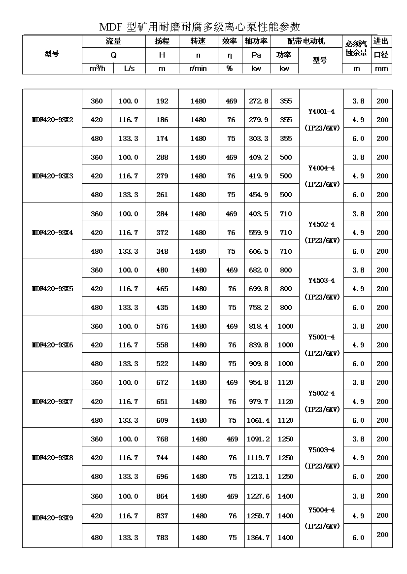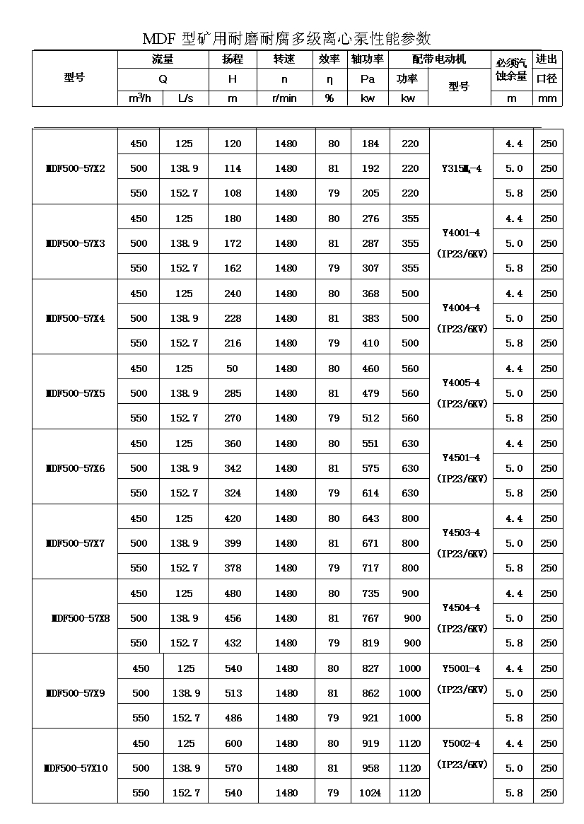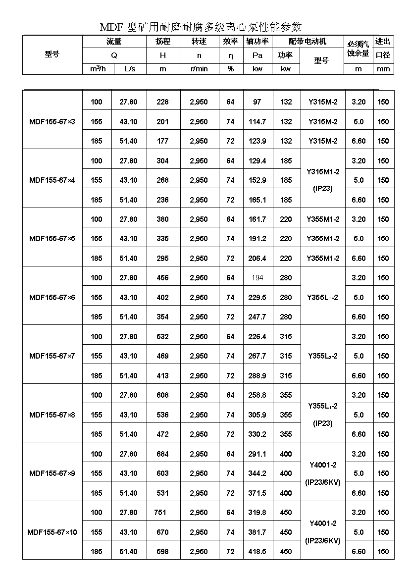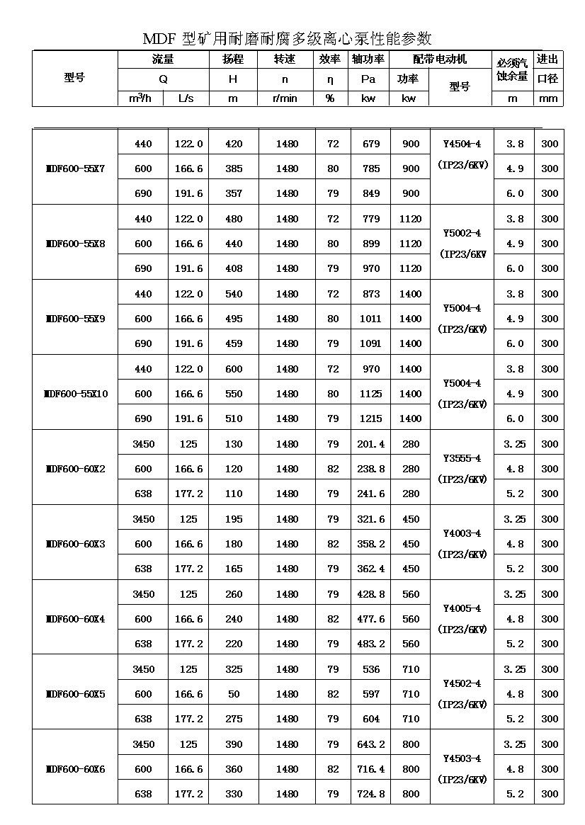 流量:Q=46-450m3/h 揚程:H=60-1080m